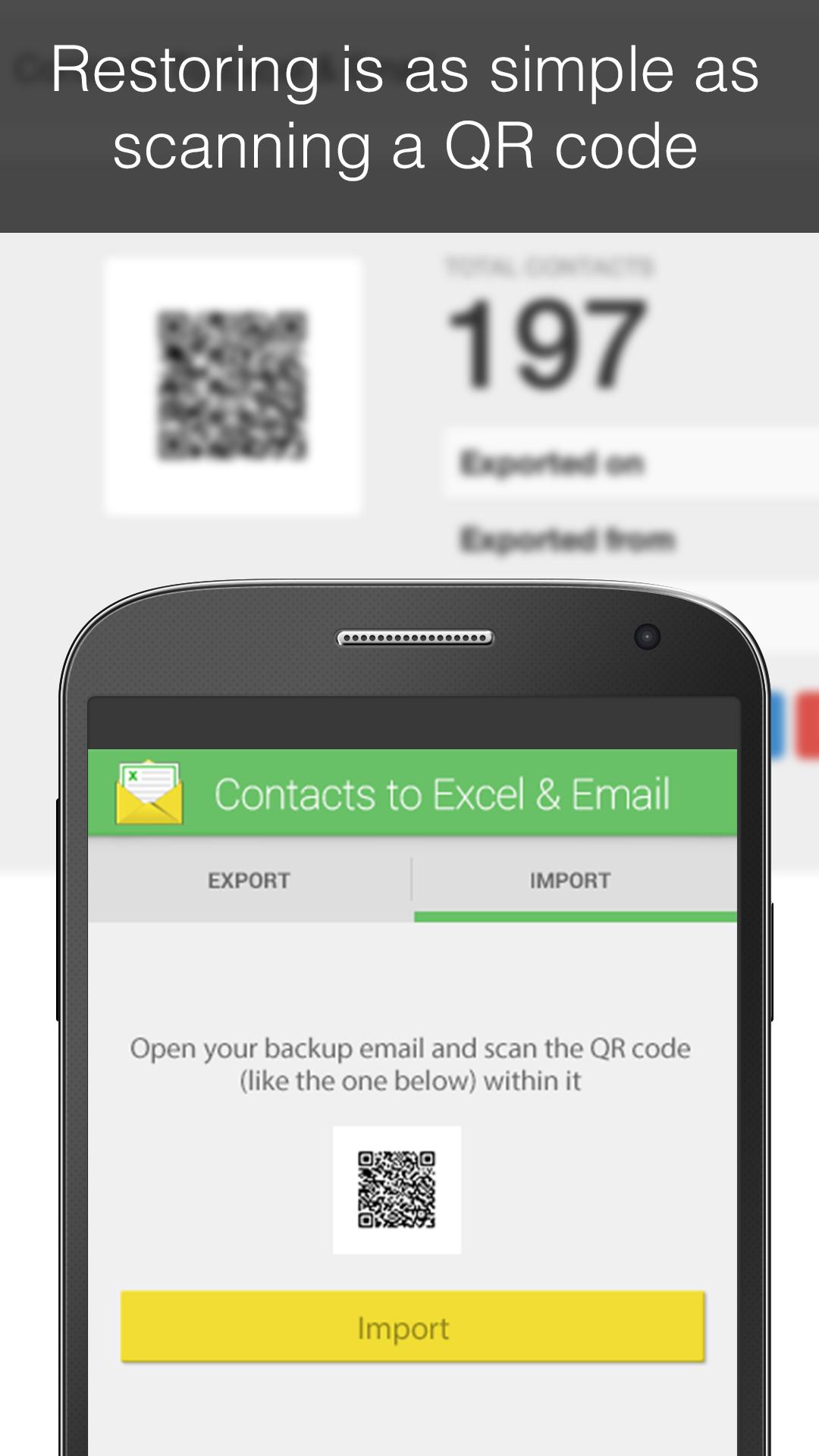 คุณสามารถนำเข้า (คุณสมบัติที่ชำระแล้ว) ผู้ติดต่อของคุณกลับไปที่โทรศัพท์ของคุณ (Android หรือ iPhone) โดยเพียงแค่สแกนรหัส QR ที่ให้ไว้ภายใน 7 วันหลังจากนั้นรหัส QR ของคุณจะหมดอายุและคุณต้องอัปโหลดไฟล์ Backup Excel ที่ https://c2xv2.eastros.com/help เพื่อรับรหัส QR ใหม่